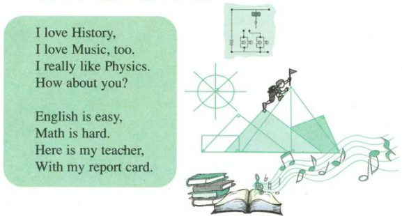 At school we study many things. In Literature, we learn about books and write essays. In History, we study past and present events in Viet Nam and around the world. In Geography, we study different countries and their people. In Physics, we learn about how things work. In the Language class, we study English. We study many other things as well, such as Music, Sports and Art. We enjoy all of our classes.