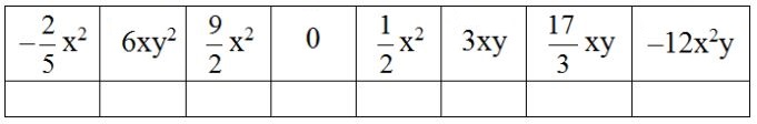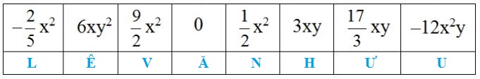 V 2x2 + 3x2 – \(\frac{1}{2}\) x2 = \(\frac{9}{2}\)x2; Ư 5xy – \(\frac{1}{3}\) xy + xy = \(\frac{17}{3}\) xy;