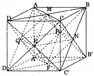 Gọi \(M\) là tâm của hình vuông \(AMCD\); \(Q\) là tâm hình vuông \(ADD'A'\); \(P\) là tâm hình vuông \(ABB'A'\); \(N\) là tâm hình vuông \(BCC'B'\); \(E\) là tâm hình vuông \(DCC'D'\) và \(F\) là tâm hình vuông \(A'B'C'D'\).