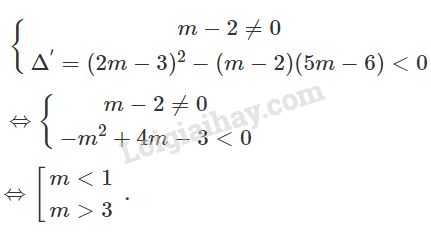 b) +) Với \(m = 3\), phương trình trở thành: \(- 6x + 5 = 0\) có nghiệm. Loại trường hợp \(m = 3\).