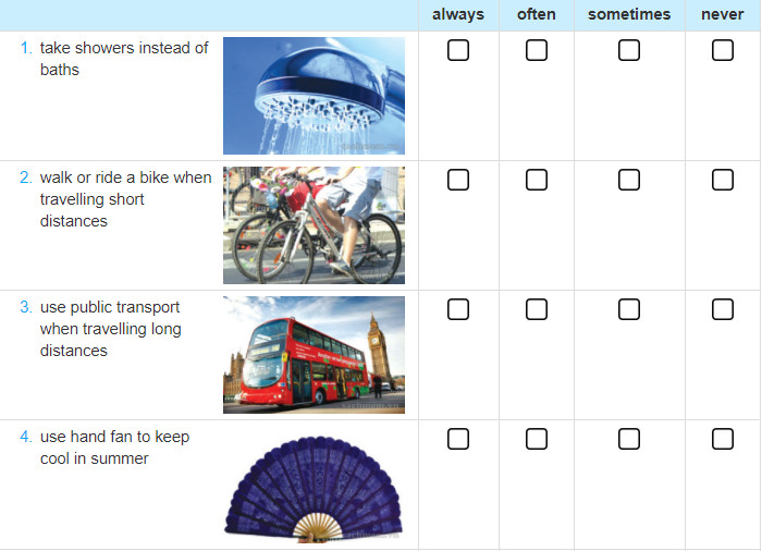 2. Work in pairs. Add up each others and look up the score below. Then explain how well your partner saves energy.