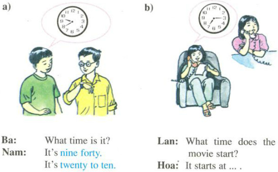 Hoa: Nó bắt đầu lúc bảy giờ mười lăm.