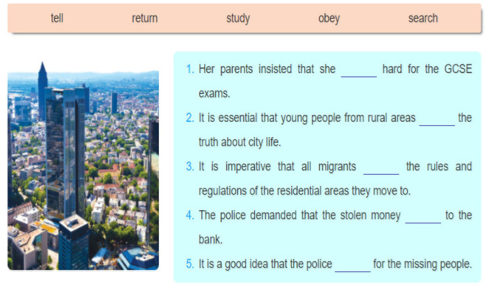 1. (should) study 2. (should) be told 3. (should) obey