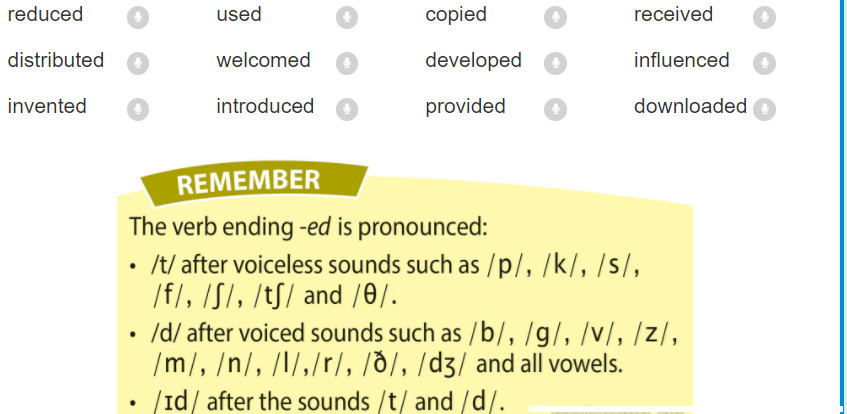 Revision: The pronunciation of the verb ending -ed (Ôn tập: Sự phát âm của động từ kết thúc bằng -ed)