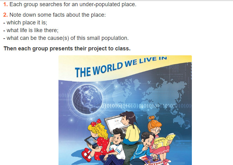 1. Mỗi nhóm tìm những nơi ít dân số.