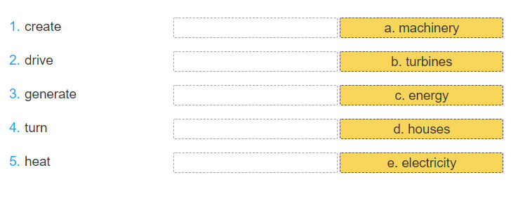 Ví dụ: Thủy điện là nguồn năng lượng có thể phục hồi bởi vì nó từ nước. Nó rẻ và nhiều. Không may, các đập có thể chỉ được xây dựng ở một vài khu vực.