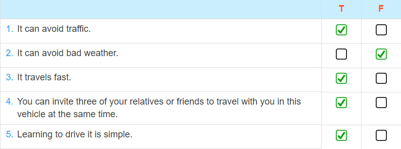 (Viết một đoạn văn ngắn về một phương tiện trong tương lai ở bài học này. Bao gồm cả những sự việc và những lựa chọn về phương tiện)