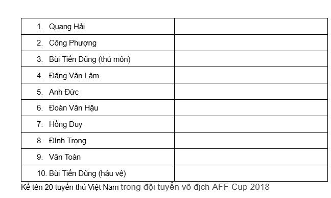 Kể tên 20 tuyển thủ Việt Nam trong đội tuyển vô địch AFF Cup 2018