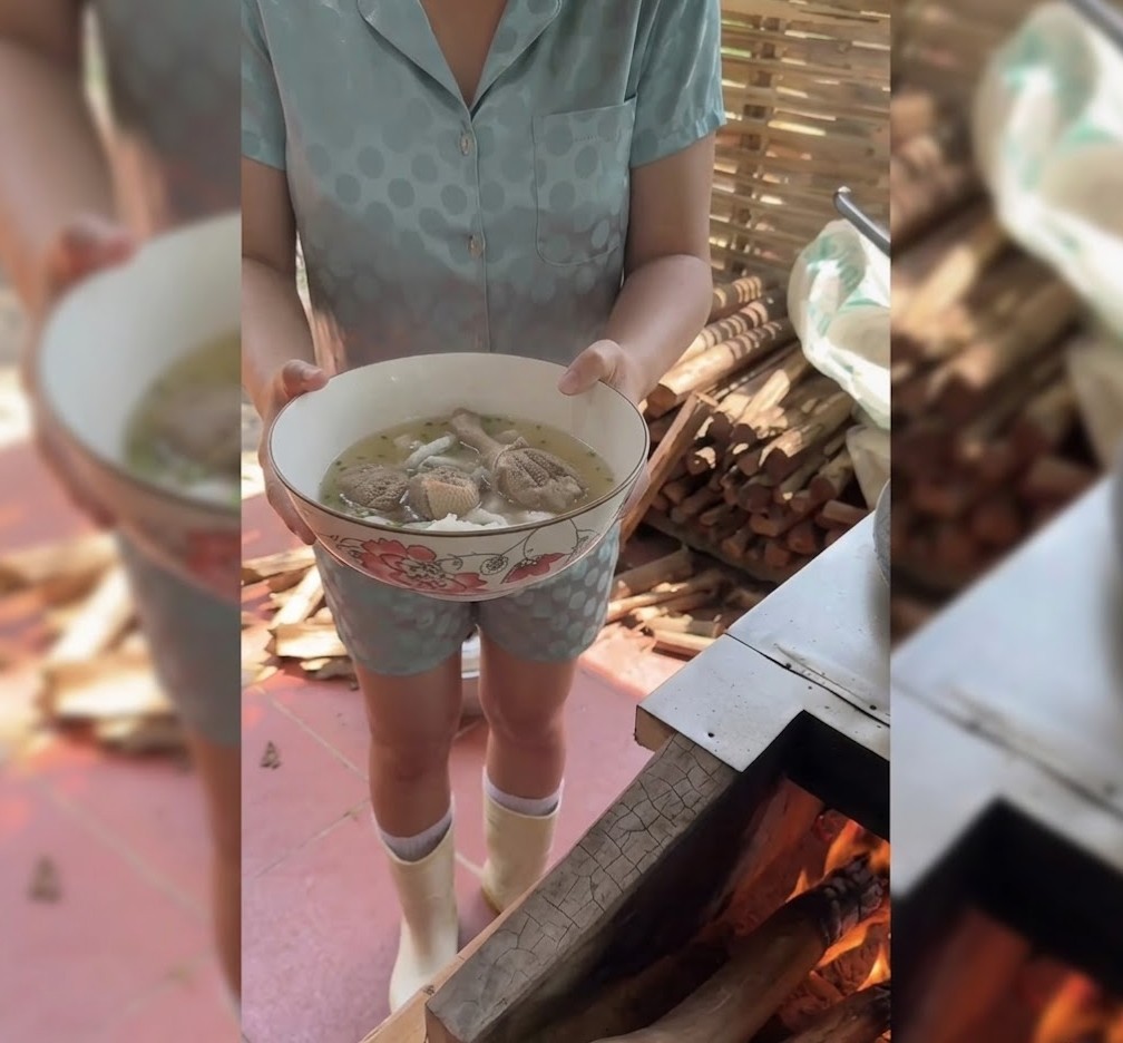 Facebook: Chị Phan Diễm nấu bánh canh thịt vịt vào buổi sáng