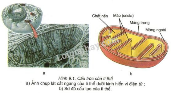 Cấu trúc của ti thể: Ti thể có 2 lớp màng bao bọc. Màng ngoài không gấp khúc, màng trong gấp khúc thành các mào, trên đó chứa nhiều loại enzim hô hấp. Bên trong ti thể là chất nền có chứa cả ADN và ribôxôm.