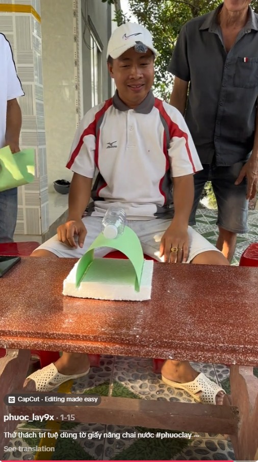 Hỗ trợ anh Phước Lầy: Dùng tờ giấy nâng chai nước