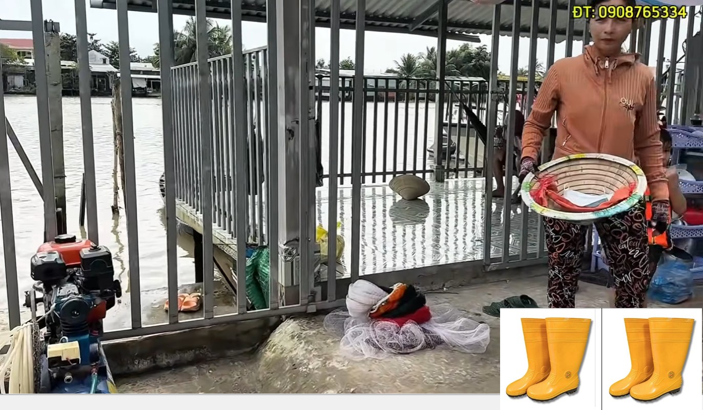 Vợ Điệp mang ủng bị chật chân, nên thay đôi ủng mới