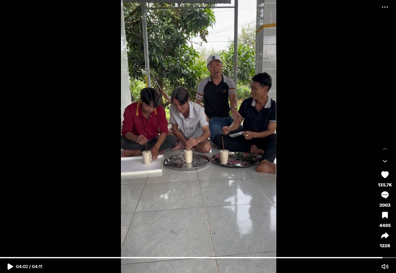 Trò chơi: 3 người dùng đũa nâng ly gạo không rớt